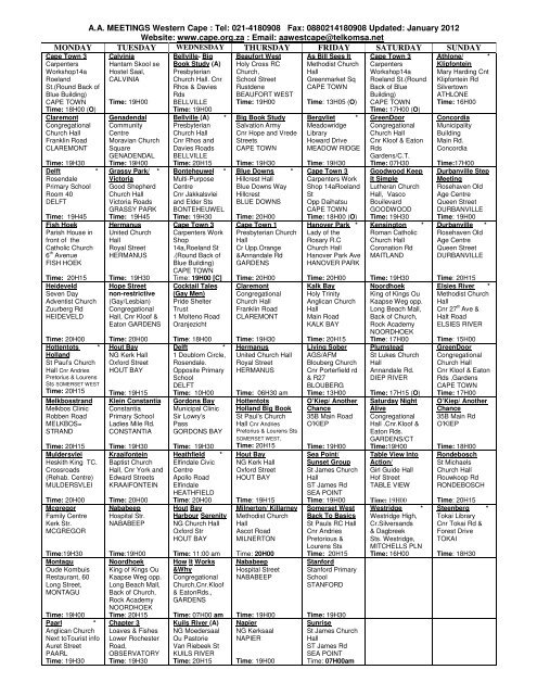 Aa Meetings Western Cape Tel Alcoholics Anonymous In The