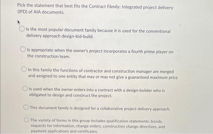 Solved Pick The Statement That Best Fits The Contract Chegg Com